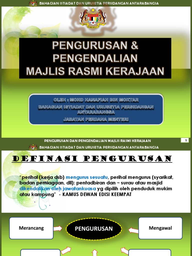 See more of bahagian istiadat dan urusetia persidangan antarabangsa jpm on facebook. Urusetia persidangan antarabangsa dan protokol. Bahagian istiadat dan urusetia persidangan antarabangsa. Objektif bahagian istiadat dan urusetia persidangan antarabangsa adalah : Perihal (kerja dsb) mengurus sesuatu, perihal mengurus (syarikat, badan perniagaan, dll):