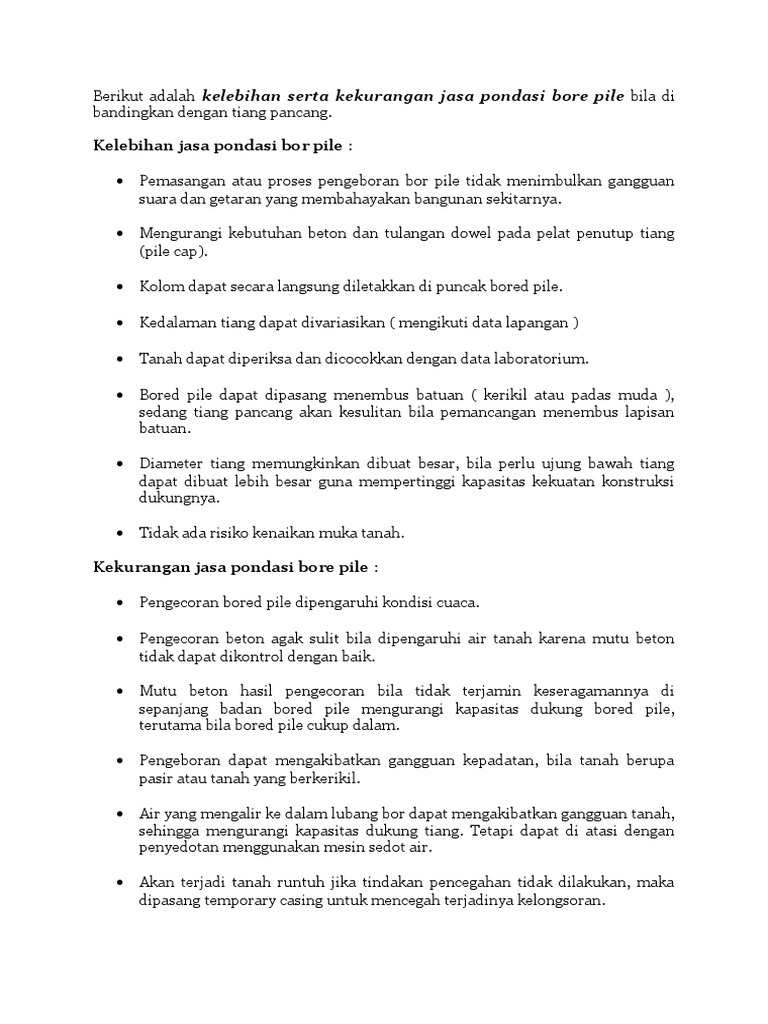 Kelebihan dan kekurangan pondasi tiang pancang. Maybe you would like to learn more about one of these? We did not find results for: Check spelling or type a new query.